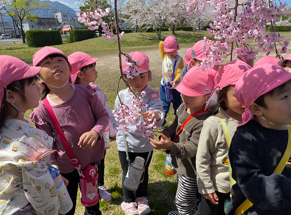 身近な自然に触れる遊びを通して命の大切さを感じたり、異年齢のお友達と遊んだり、地域の方々と関わったりする中で、心も体も大きく健やかに育つことを願っています。